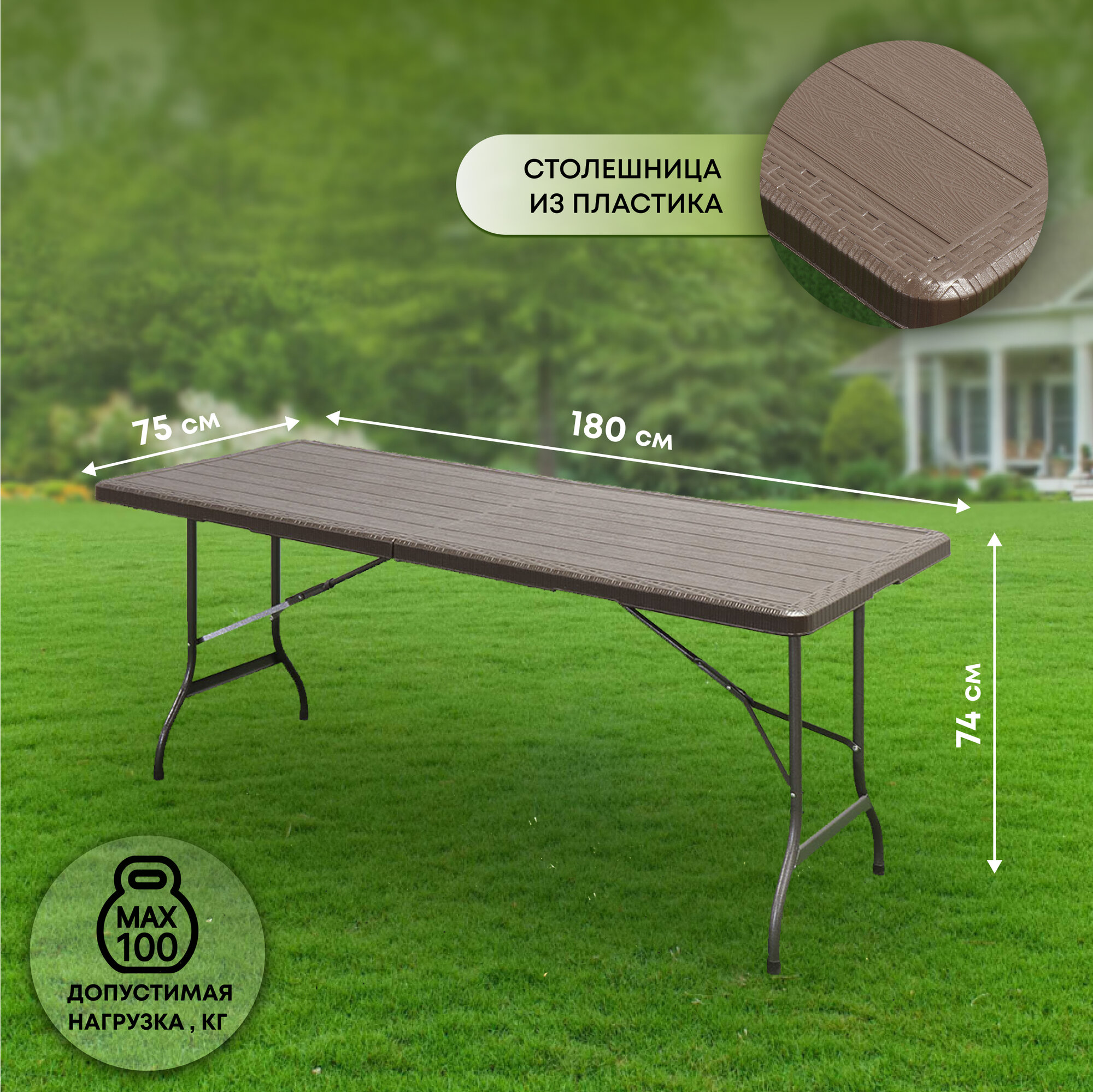 Стол складной металл, прямоугольный, 150х60х70 см, столешница МДФ, черный, Green Days, YTFT043-blck+venge