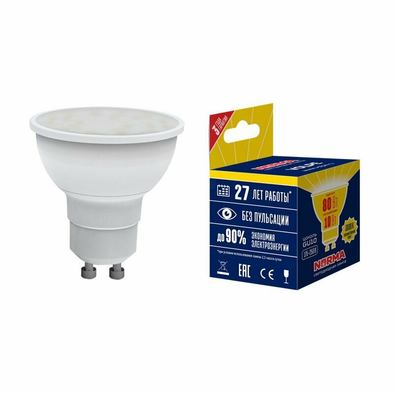 Отзывы на Лампа светодиодная GU10 10W 3000K матовая LED-JCDR-10W/WW/GU10/NR UL-00003842