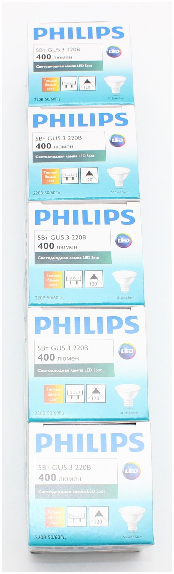 Отзывы на Светодиодная лампа Philips GU5.3 5Вт теплый белый свет, упаковка 5 штук