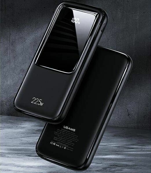Внешний аккумулятор Usams 30000mAh 65W, Power Bank, портативный аккумулятор, черный