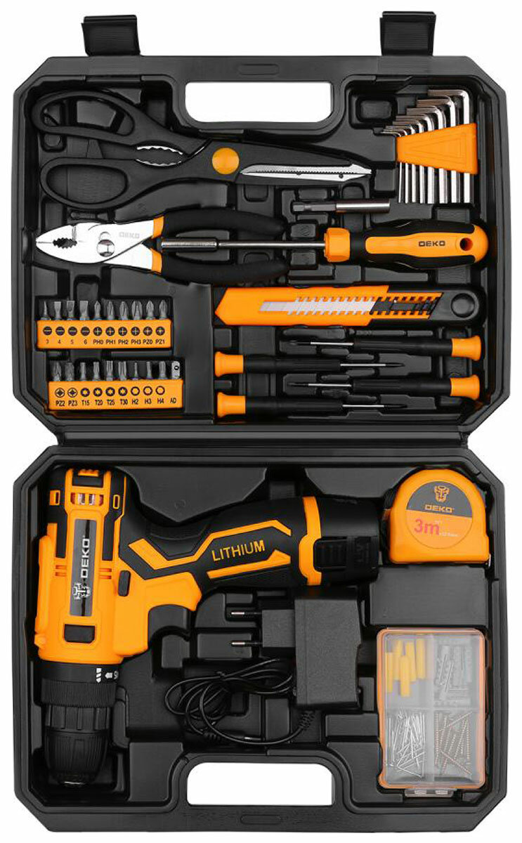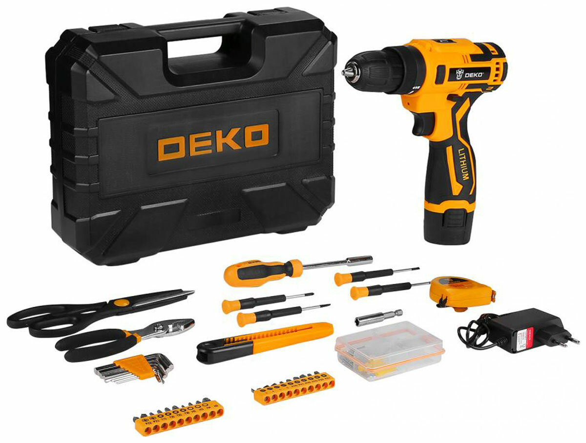 Отзывы на Аккумуляторная дрель-шуруповерт Deko Banger 12V Li-Ion набор инструмента 93 предмета 1х1.8 Ач з черно-желтый