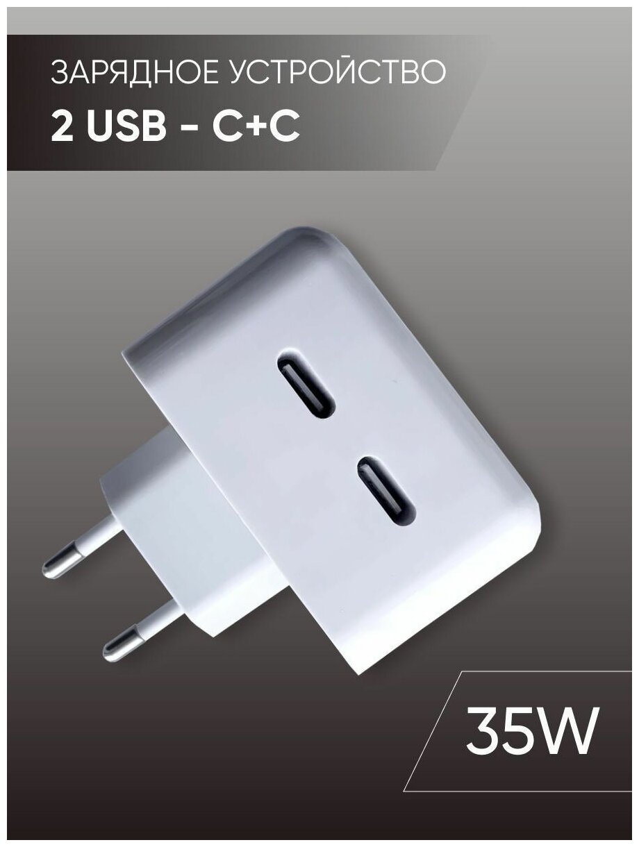 10 цен на Зарядное устройство с 2 выходами USB type-c 35W / Блок питания Power Delivery быстрая зарядка тайп-си 35В для телефона, смартфона или планшета
