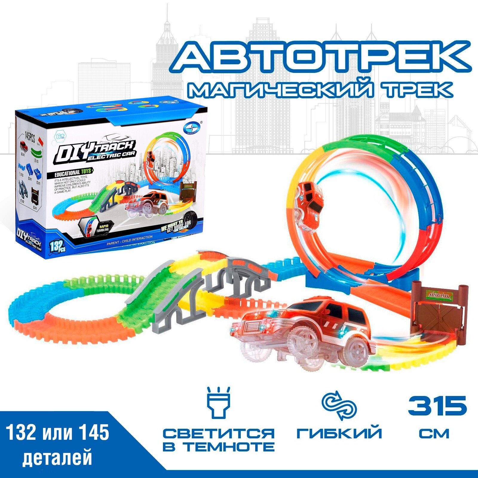 Автотрек «Магический Трек», гибкий, светится в темноте, 132 детали, мертвая петля информация:
