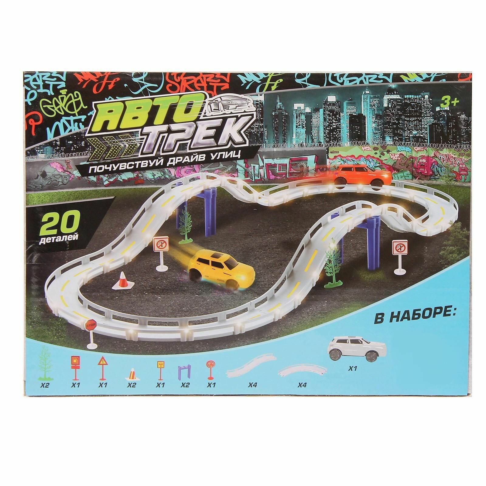 Автотрек «Граффити», в наборе 1 машина и дорожные знаки, длина трассы 180 см, работает от батареек, 20 деталей