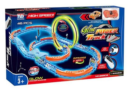 Автотрек (54.5*7*31см) светящийся (46 дет. Машинка. Аккумулятор 3.7V. USB) в коробке