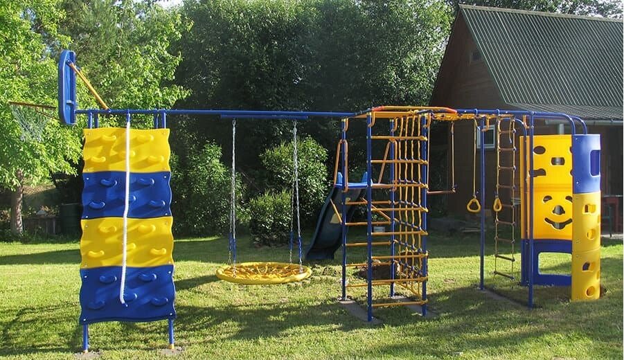 | В комплекте | баскетбольное кольцо, веревочная лестница, гимнастические кольца, горка, канат, качели, рукоход, сетка для лазания, скалолазная стенка, трапеция, турник |