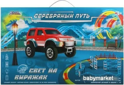 10 цен на Автотрек электронный Наша Игрушка 5 уровней, длина пути 542 см, свет, 74 детали, 2 разворотных элемента, машина (SW7357)