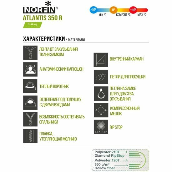 Мешок-кокон спальный Norfin ATLANTIS 350 R информация: