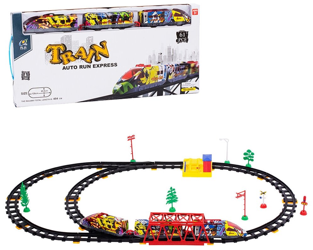 10 цен на Железная дорога (локомотив+2 вагона) 61 деталей, на батарейках, свет, длина пути 484 см(2948A)