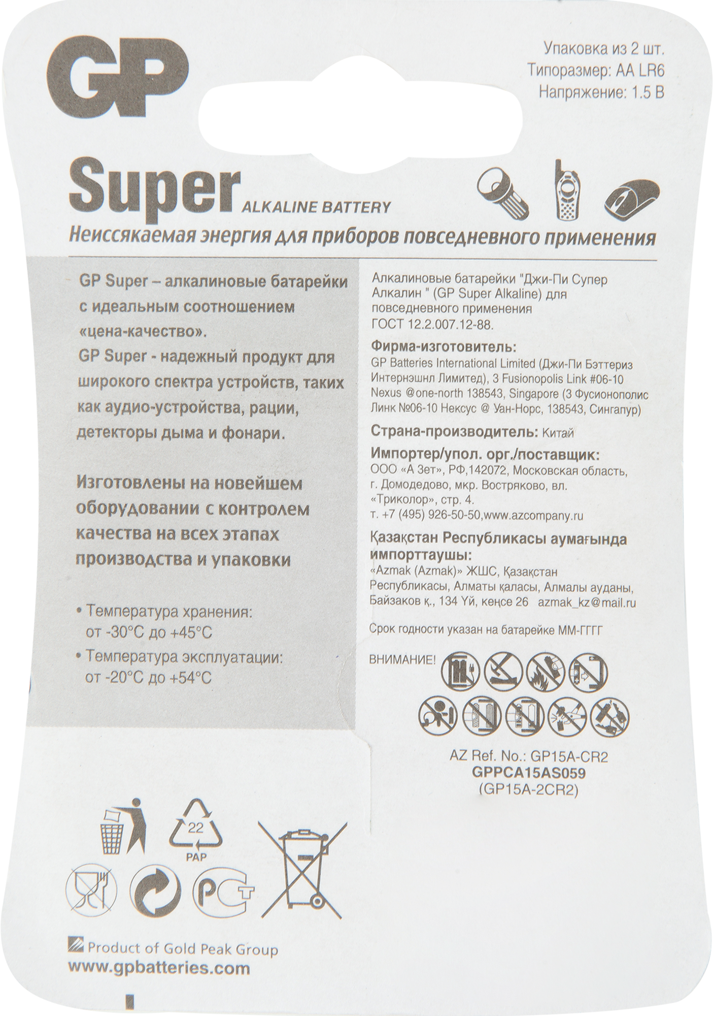 Батарея GP Super Alkaline 15A LR6 AA (2шт) информация: