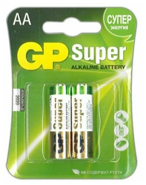 GP Батарейки Super Alkaline АA/LR6,2 штуки в уп, 2 упаковки информация: