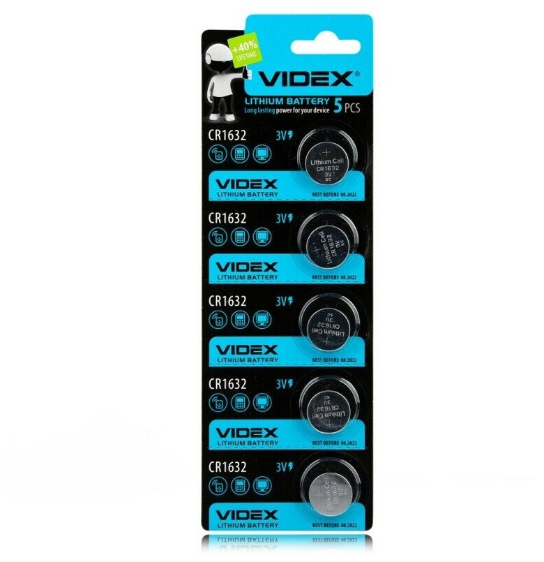 Элемент питания VIDEX литиевый 5 шт. в блистере CR1632 информация: