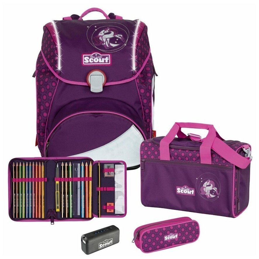 Отзывы на Ранец школьный с наполнением легкий ортопедический SCOUT Alpha Exklusiv Safety Light "Лунная пони" 20,5л, 4 предмета