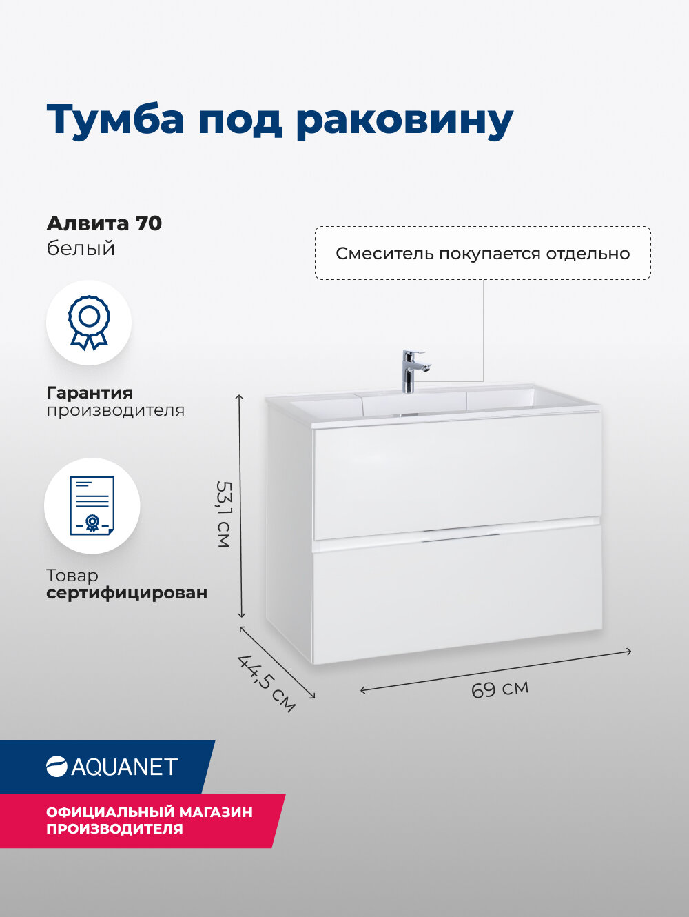 Тумба под раковину Aquanet Алвита 70 белый информация: