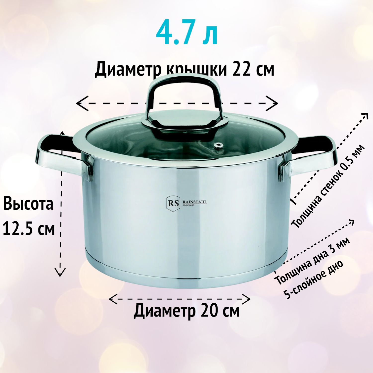 Кастрюля RS/CS 2910-22 / 2 пр./ 4,7 л./капсульное дно информация: