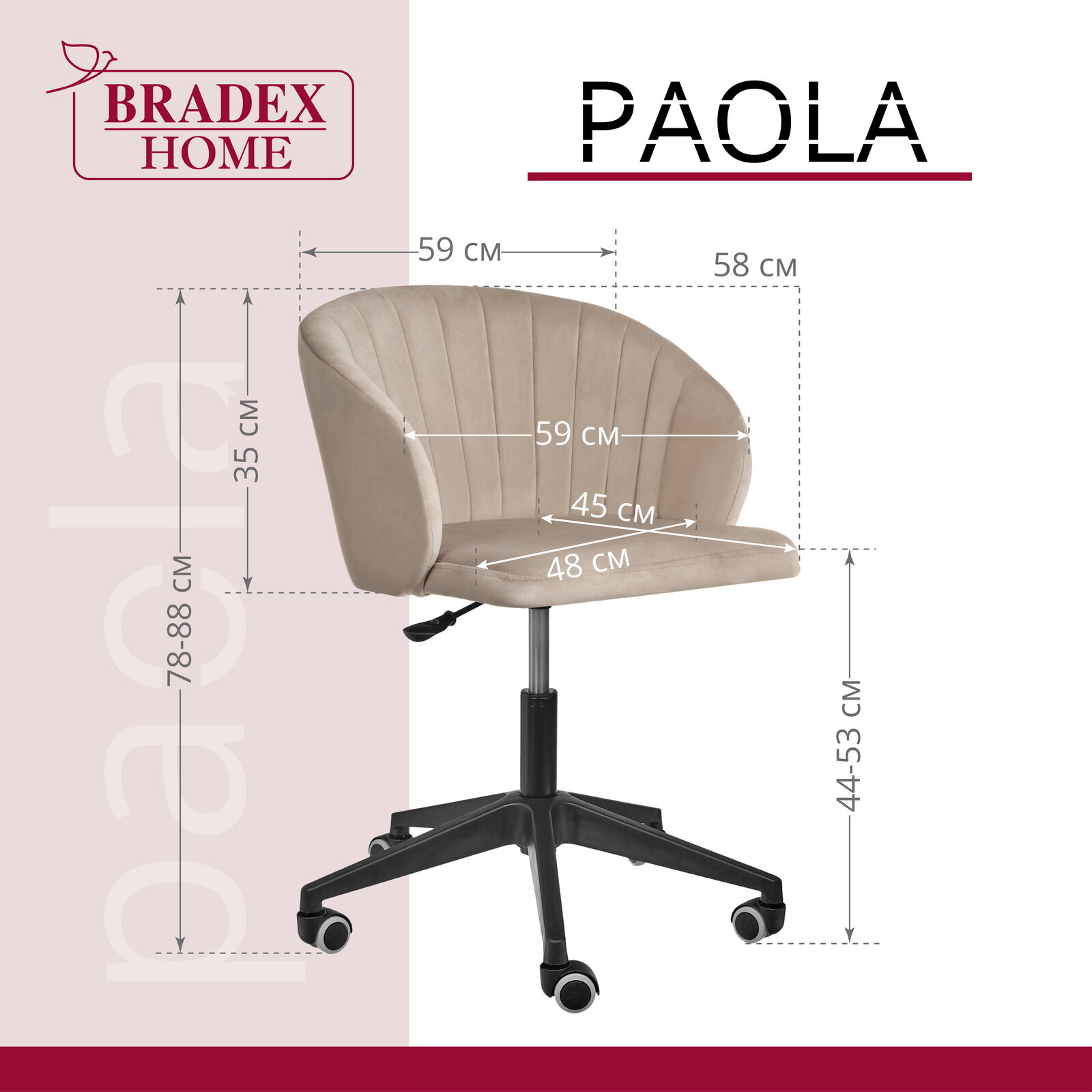 Стул Paola вращающийся на колесиках латте информация: