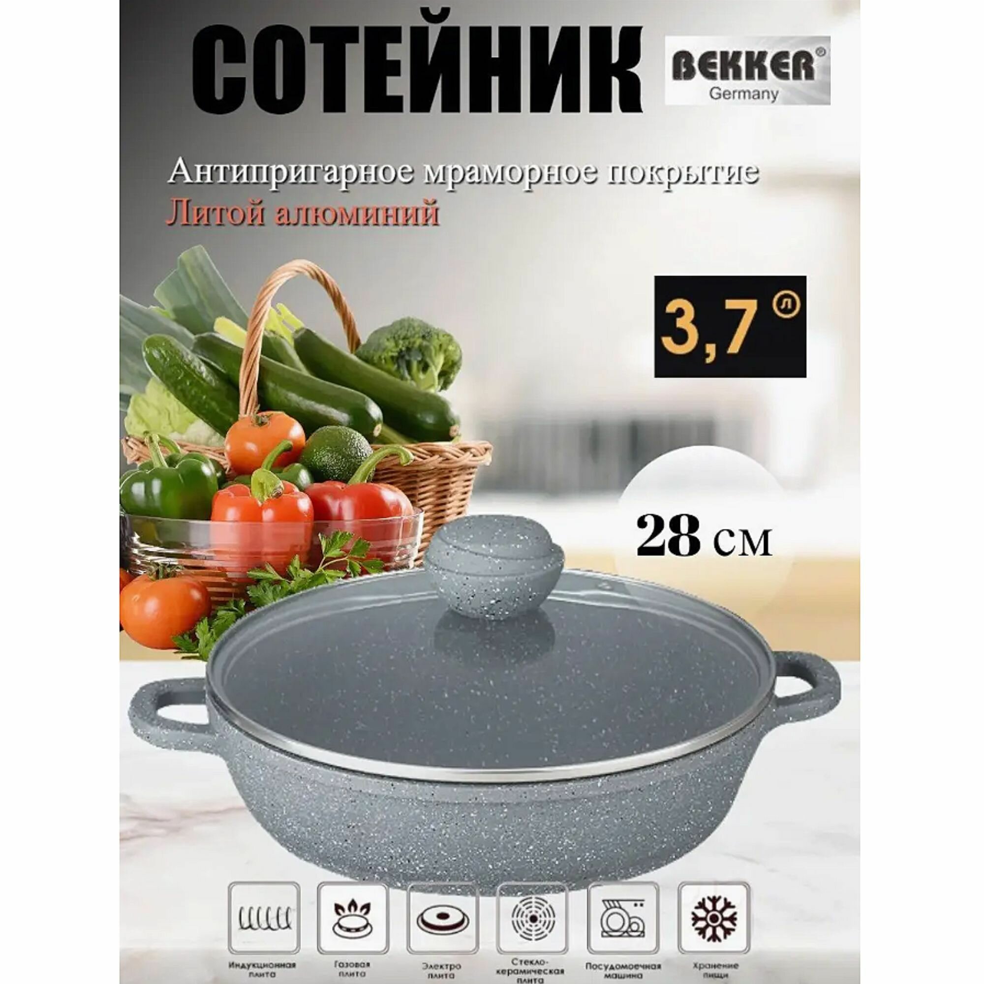 Сотейник Bekker SILVER MARBLE BK-3802, 28 см информация: