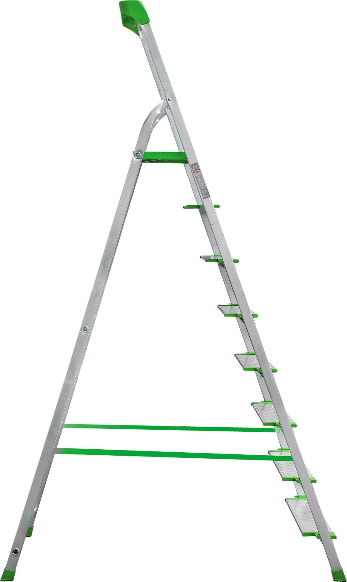 Стремянка Новая Высота алюминиевая, 7 стандартных ступеней 9 см, площадка 1,5 м, 225 кг, вес 5,7 кг