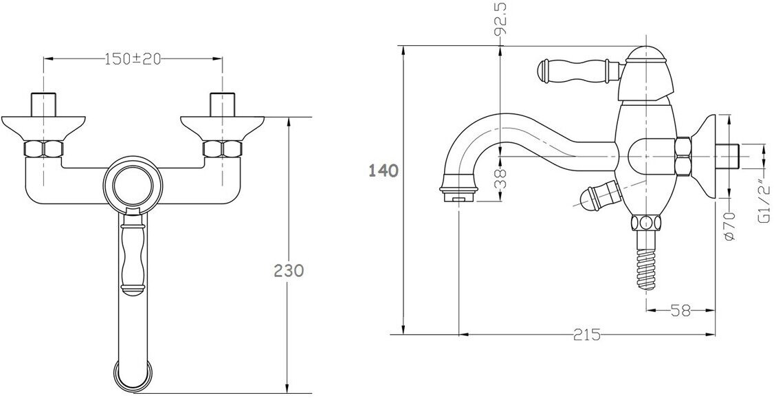 Смеситель на раковину настенный Эверест B46-350 с круглым поворотным изливом, кран-буксы 1/2", хром