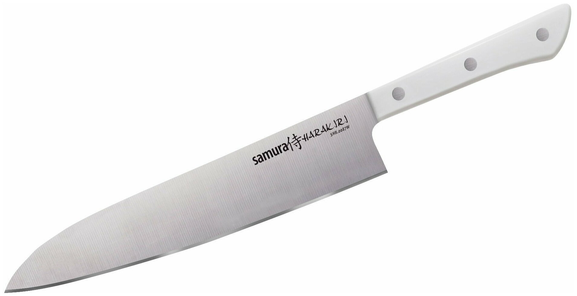 Шеф нож для нарезки мяса, рыбы, овощей и фруктов / кухонный нож / поварской нож для кухни Samura HARAKIRI 240 мм SHR-0087W информация:
