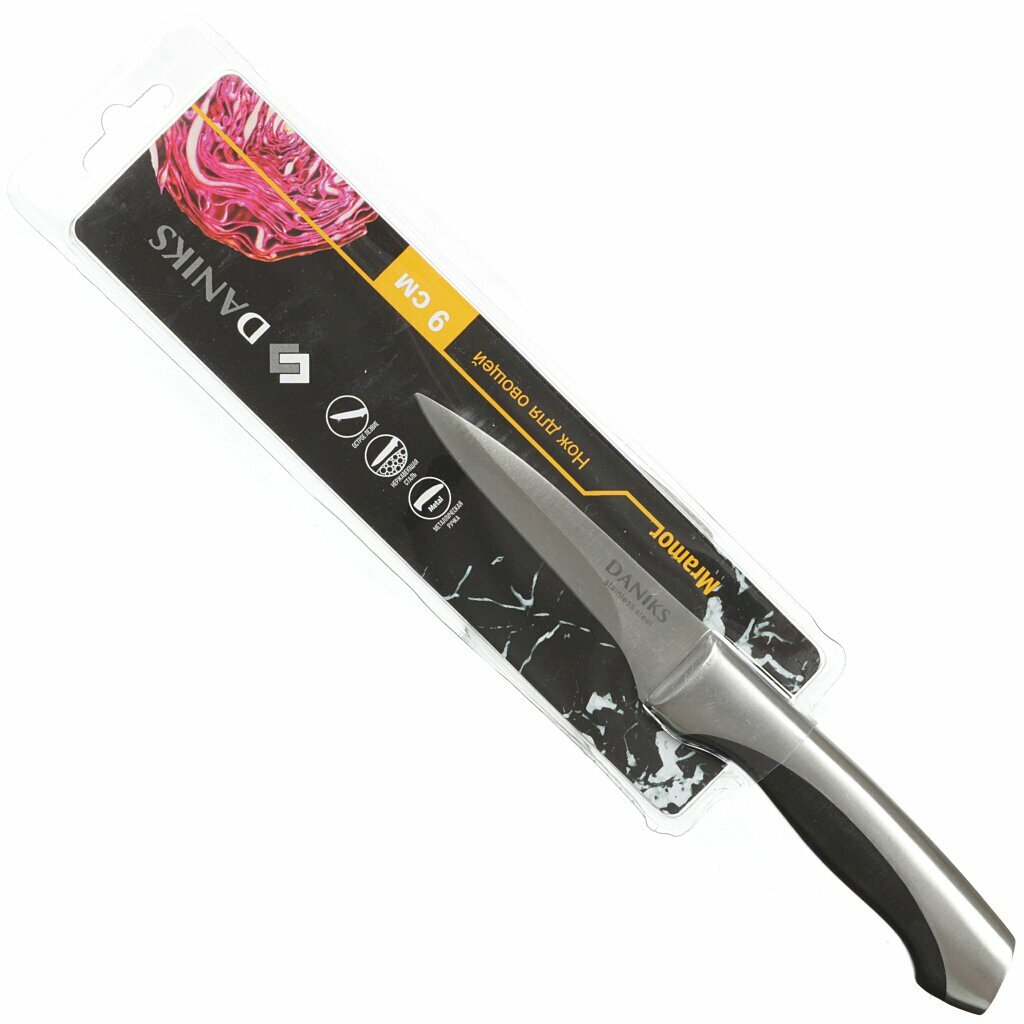 10 цен на Нож кухонный Daniks, Мрамор, для овощей, нержавеющая сталь, 9 см, рукоятка сталь, YW-A156-PA
