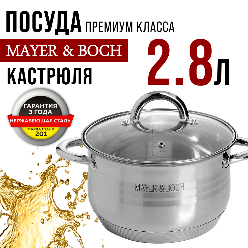 10 цен на Кастрюля 2,8л ст/кр 7-ми слойное дно MAYER&BOCH 24031 KSMB-24031