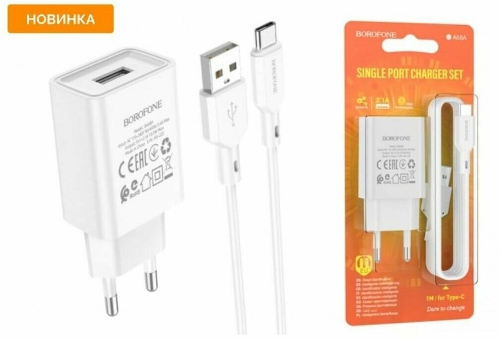 Отзывы на Сетевое зарядное устройство c USB Borofone, BA68A,+Type-C, белое, 2.1A