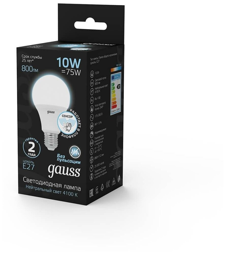 10 цен на Лампа светодиодная Black A60 10Вт E27 4100К Gauss GAUSS 102502210 (1 шт.)