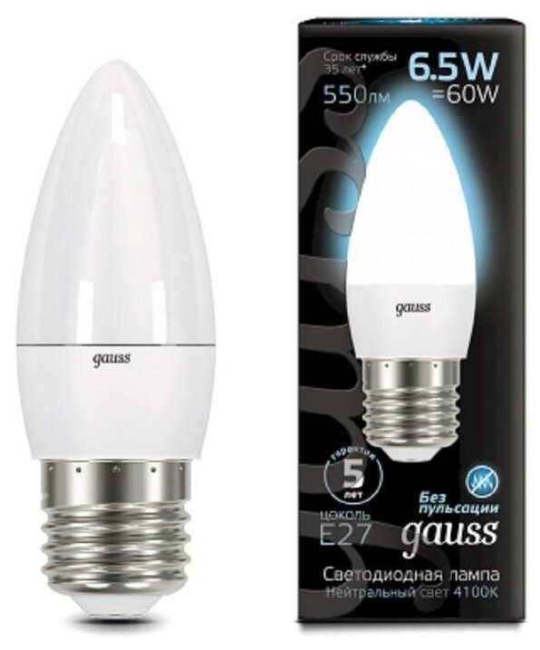 Отзывы на Gauss Лампа Свеча 6.5W 550lm 4100К E27 LED 3 шт (арт. 103102207)