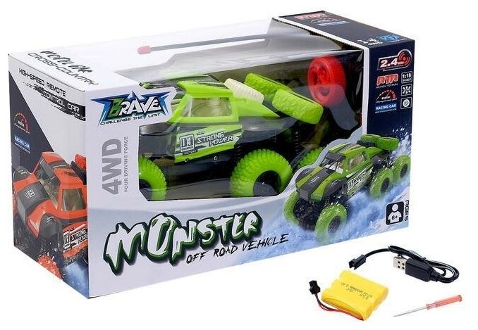 Джип радиоуправляемый «Монстр», 4WD, работает от аккумулятора, цвет зелёный информация: