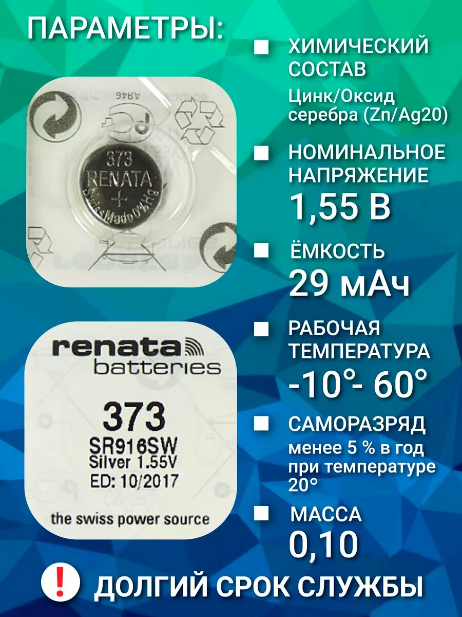 Батарейка Renata 373 (SR916SW) 5 шт информация: