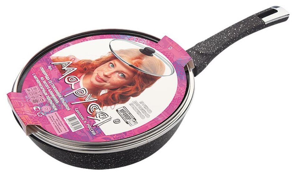 Отзывы на Сковорода Маруся Мрамор 7822с 22 см со стекл.крышкой (литая антипригарная) черная