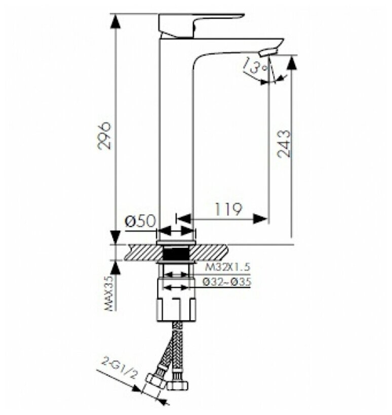 | Длина излива | 119 мм |