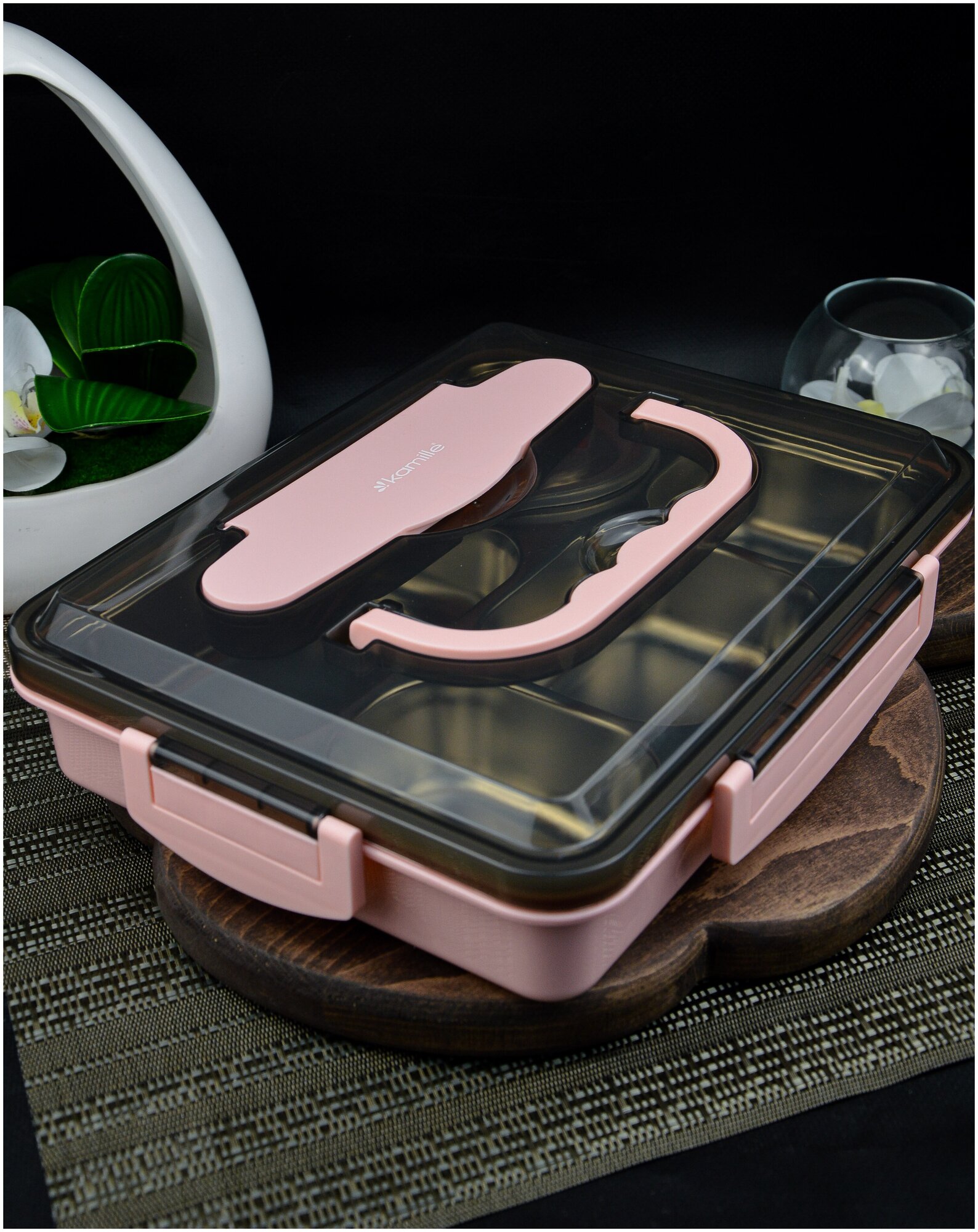 10 цен на Ланч-бокс нержавеющая сталь в пластиковом корпусе, цвет в ассортименте: розовый, зеленый / контейнер пищевой