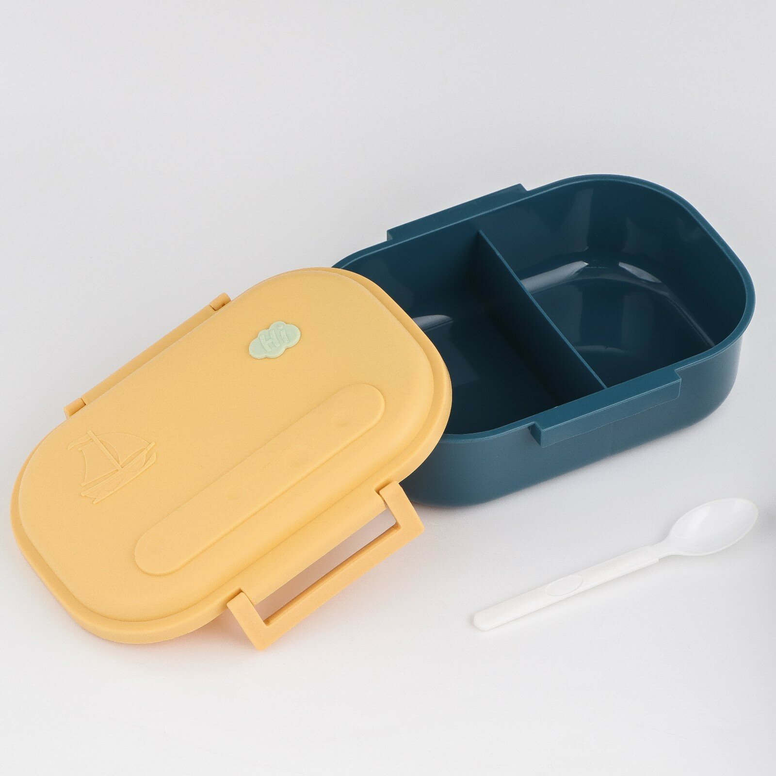Ланч бокс контейнер для еды с раздельными секциями - синий , 25х18х7 / металлический