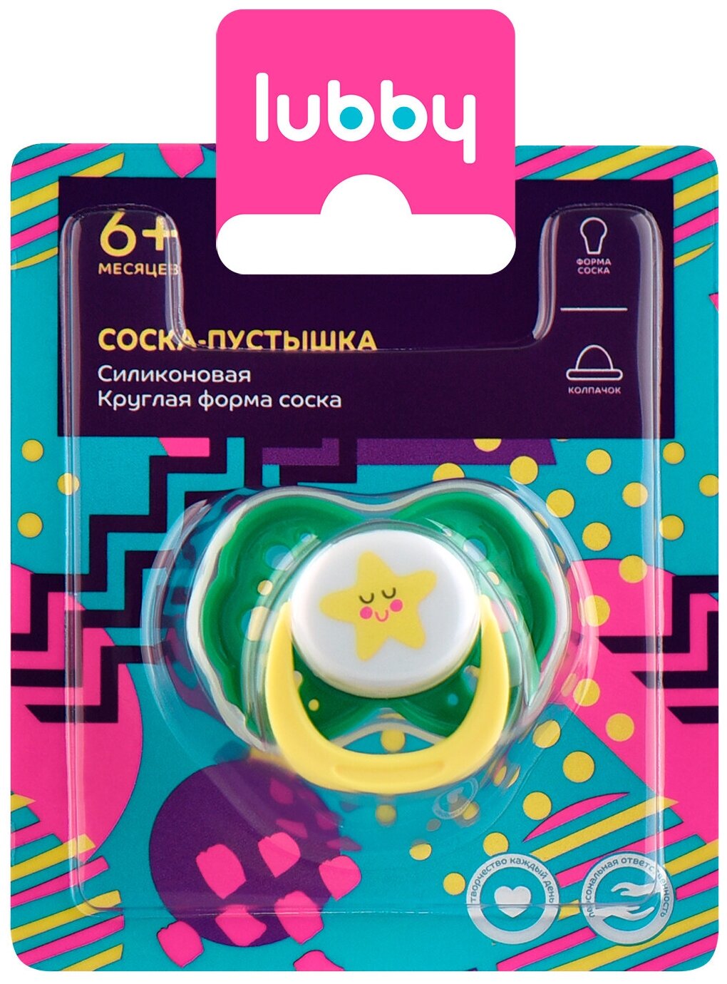 LUBBY Соска-пустышка круглый сосок, от 6 мес, с колпачком, силикон информация: