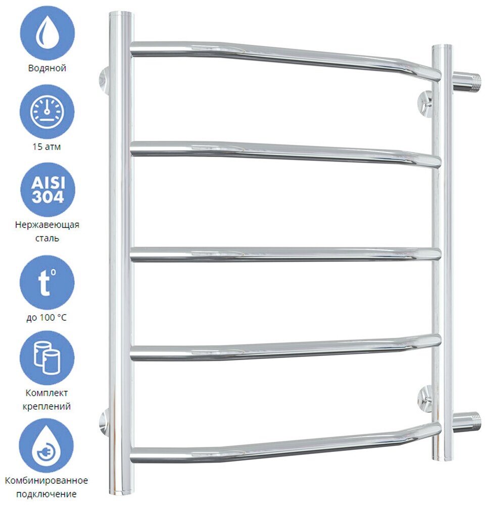 Водяной полотенцесушитель Laris Виктория П5 500х600 мм мц 500 1" боковое подключение цвет хром из нержавеющей стали форма лесенка информация: