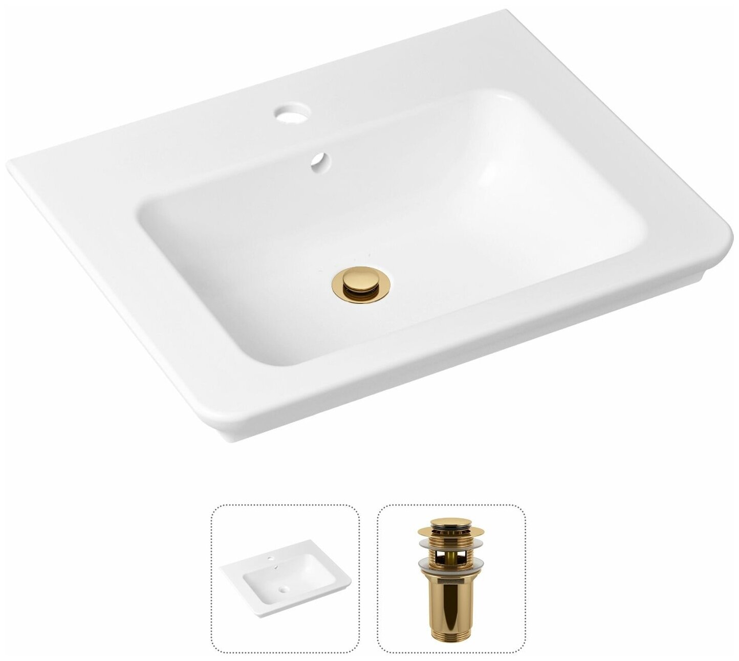 Врезная раковина в ванную Lavinia Boho Bathroom Sink 21520862 в комплекте 2 в 1: умывальник белый, донный клапан в цвете золото