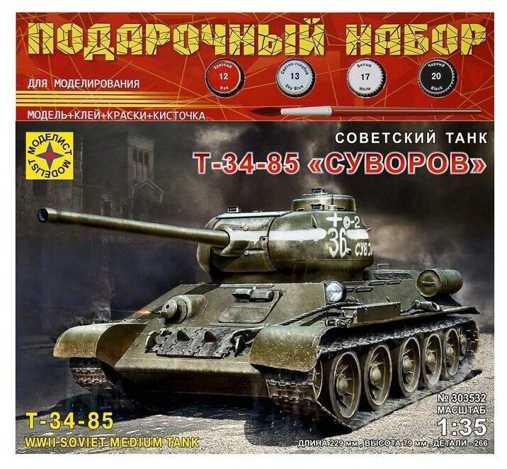 Моделист Советский танк Т-34-85 Суворов, 1/35 Сборная модель информация: