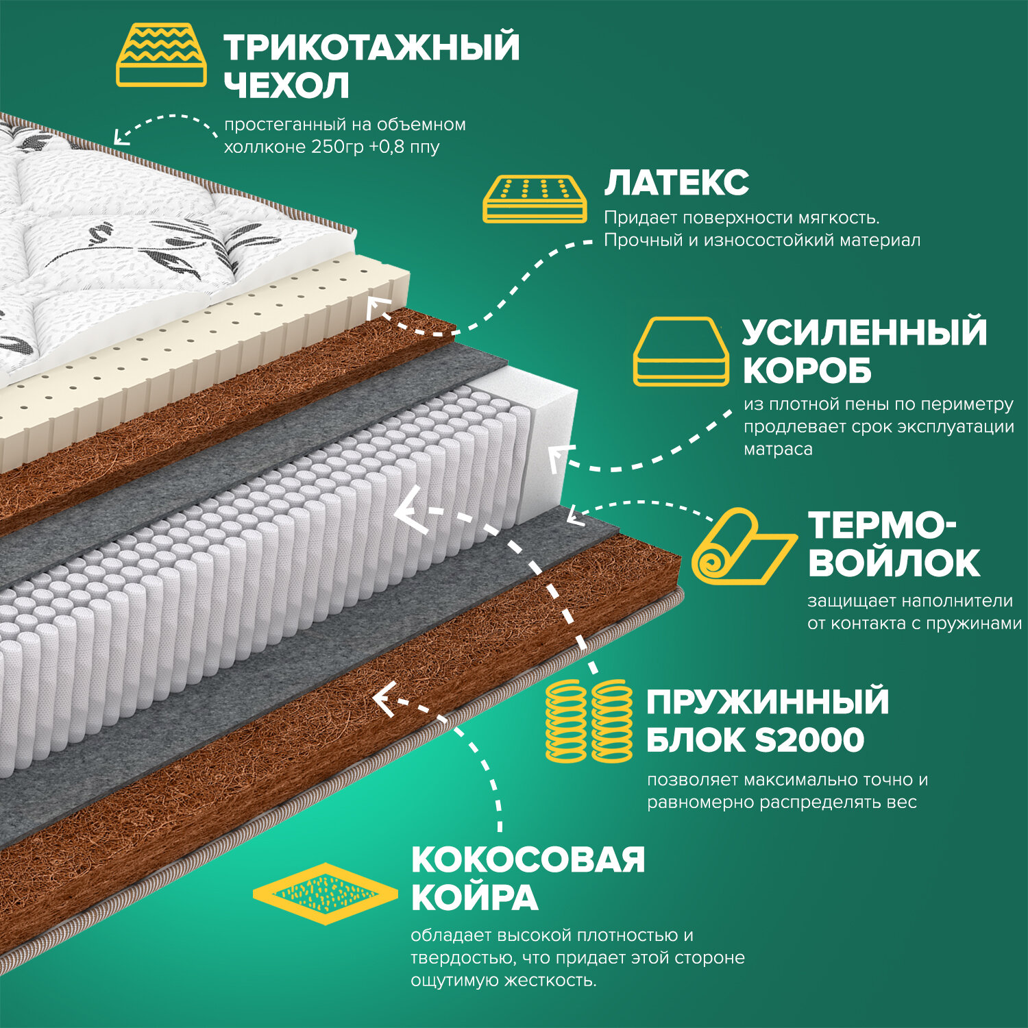 Матрас Sleeptek Lux LatexStrong Cocos 180х200 информация: