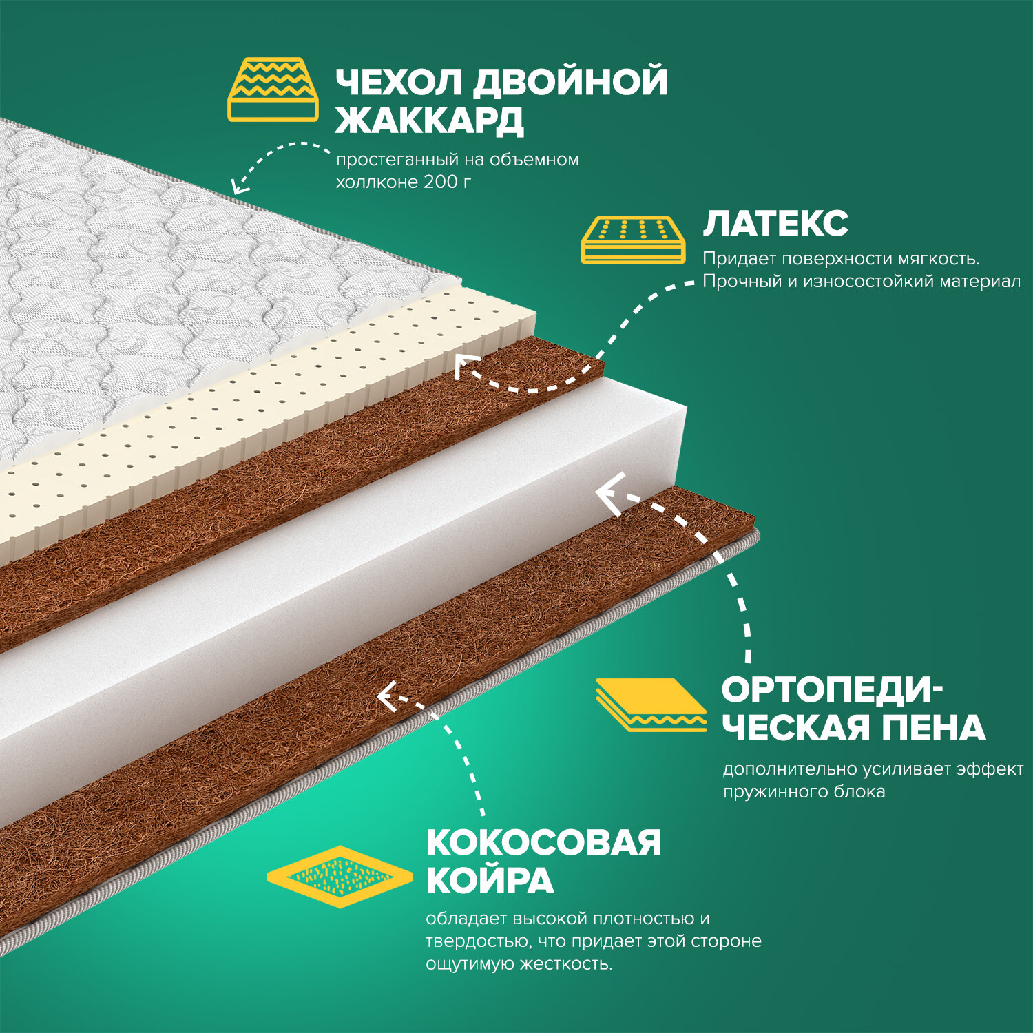 Фабрика Сна Матрас EDMOND, независимые пружины, кокос, средняя жесткость, анатомический, 90х200 см