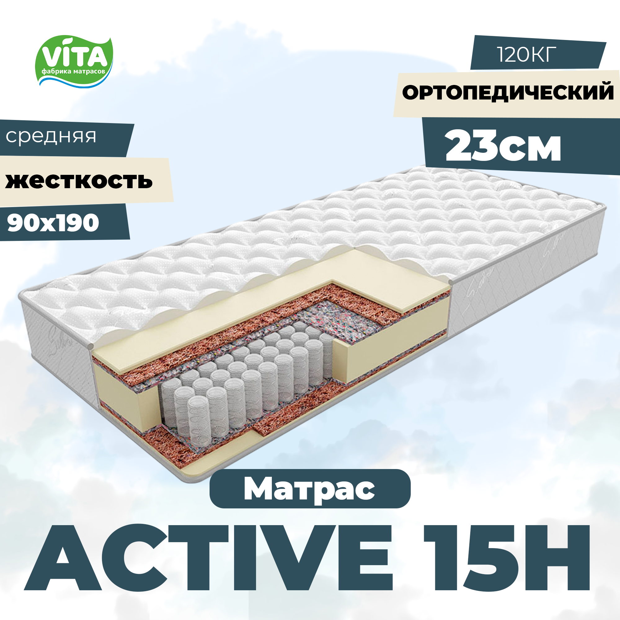 Матрас ортопедический пружинный Active 15 Hard PS 500 (90х190) информация: