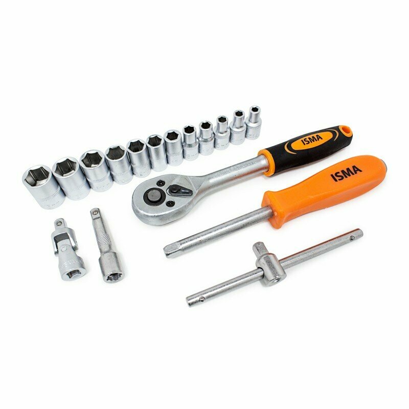 10 цен на Набор инструмента 17 предметов ISMA-2017 6 гран. 1/4"DR