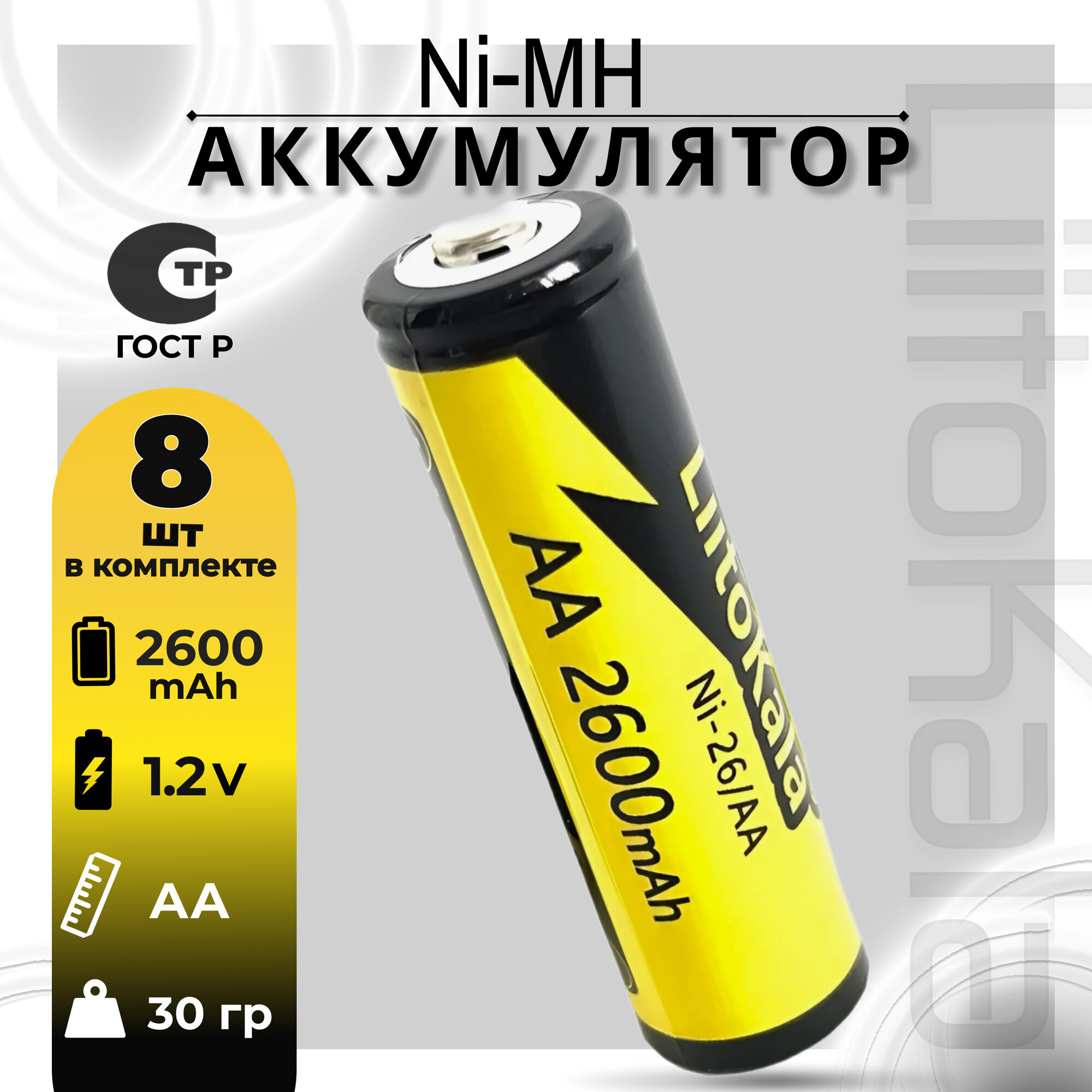 Аккумулятор LiitoKala Ni-26 AA Ni-Mh 2600 мА·ч 1.2V (8штук) информация: