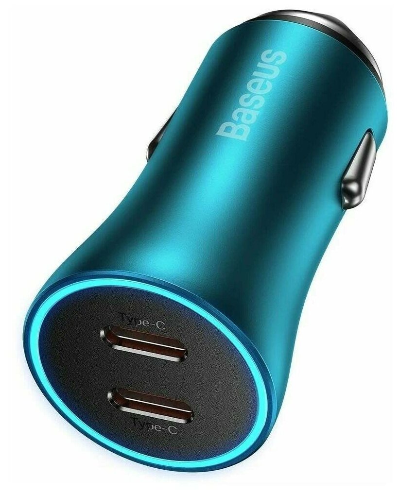 Автомобильное зарядное устройство BASEUS Golden Contactor Max Dual Fast Charger, 2*USB-C, 5A, 40W, синий