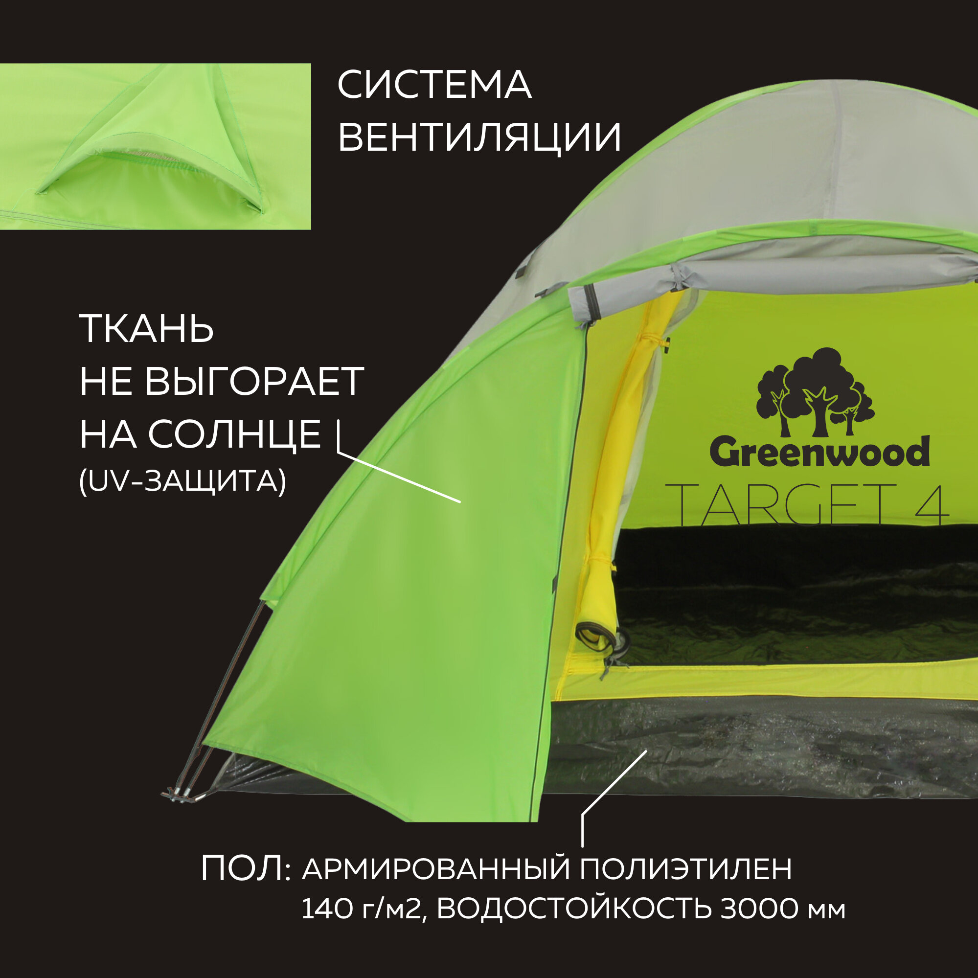 10 цен на Палатка 4-х местная Greenwood Target 4 лайм/серый