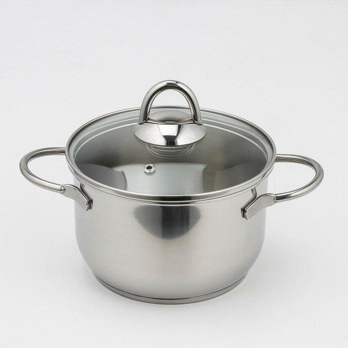10 цен на Кастрюля «Классика-прима», 1,75 л, d=16 см, стеклянная крышка, с теплораспределительным слоем, цвет серебристый