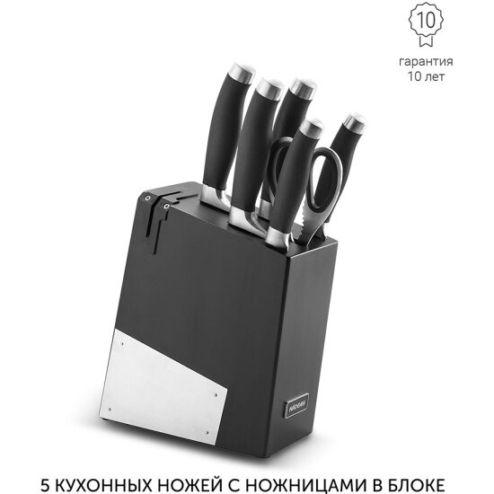 Отзывы на Набор из 5 кухонных ножей Nadoba , ножниц и блока для ножей с ножеточкой
