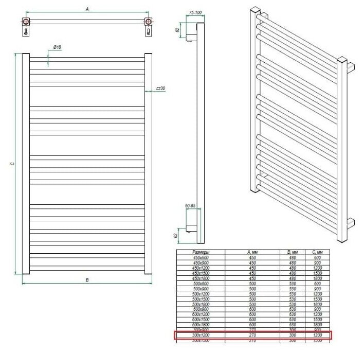Водяной полотенцесушитель Grota Classic 300х1200 (белый) информация: