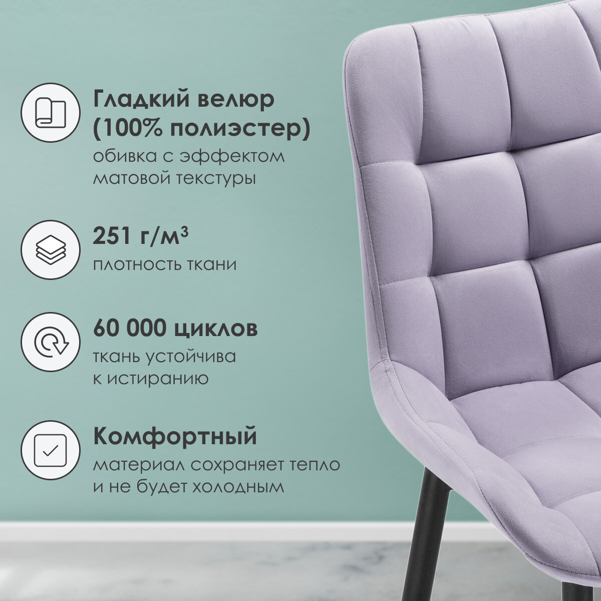 Стул на металлокаркасе LM.RU Зест микровелюр 12 / черный глянец